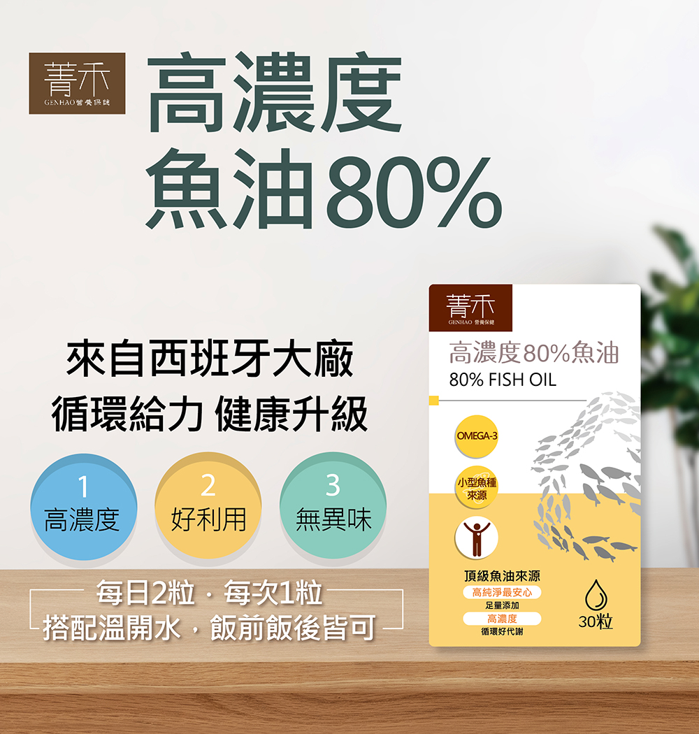 【菁禾GENHAO】高濃度 80% 魚油 一盒(30粒/盒)